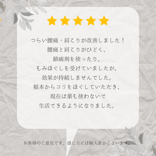 つらい腰痛・肩こりが改善しました!腰痛と肩こりがひどく