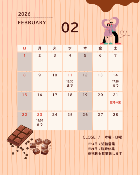 2月営業日のご案内です。